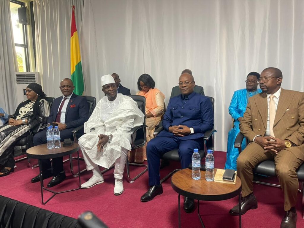 Madame Camara Djenab Touré, accompagnée de plusieurs cadres de la Direction Générale des Élections, assure la supervision de cette rencontre. Le représentant de premier ministre, le ministre de l’administration du territoire et de la décentralisation (MATD), le ministre de l’information et de la communication, le ministre des transports et porte-parole du gouvernement, le ministre directeur du cabinet de la primature, sont présents.