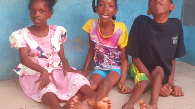 Dans le quartier de Dabompa Plateau 1, l’histoire de la famille SOW ressemble à un compte à rebours cruel. Tout commence par une naissance normale, des premiers pas, des premiers sourires. Puis, vers l’âge de 8 ou 9 ans, les symptômes débutent : retard de croissance, extinction progressive de la parole, paralysie des membres : sur quatre enfants, trois sont aujourd’hui lourdement handicapés.