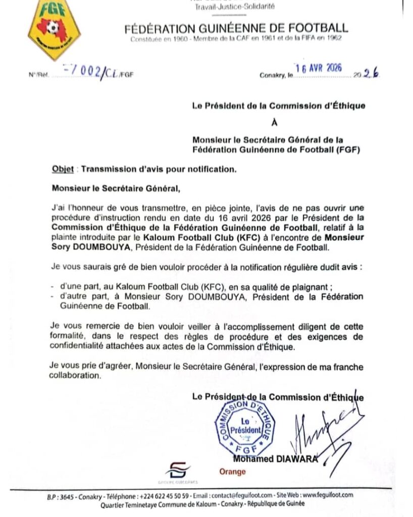 L’affaire, qui tenait en haleine les observateurs du football guinéen, connaît un premier dénouement majeur. La commission d’éthique de la Féguifoot, après avoir examiné les éléments liés à l’audio viral mettant en cause son président, a conclu à l’irrecevabilité d’une procédure disciplinaire à ce stade.